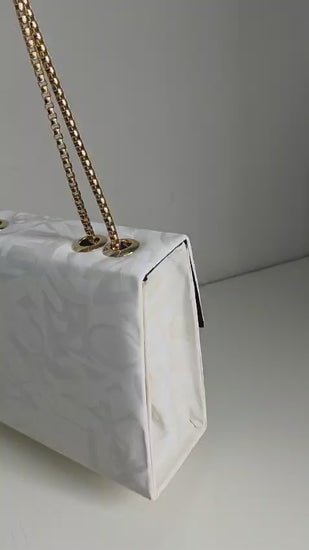 White Classic Plaid Check Pattern Handbag with Gold Chain